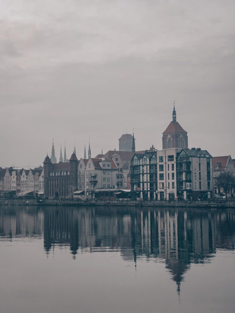 Gdańsk (guh-DANYSK) is Poland’s Baltic coast city, and it has a completely different energy from Kraków or Warsaw. Where those cities are inland and landlocked, Gdańsk smells like salt air, looks like Amsterdam’s taller, more colourful cousin, and moves at a pace that slows down the closer you get to the water. The waterfront along the Motława River is lined with tall, narrow merchant houses painted in amber, green, and terracotta — built on centuries of wealth from the amber and grain trades when this was one of the richest ports in the Hanseatic League.